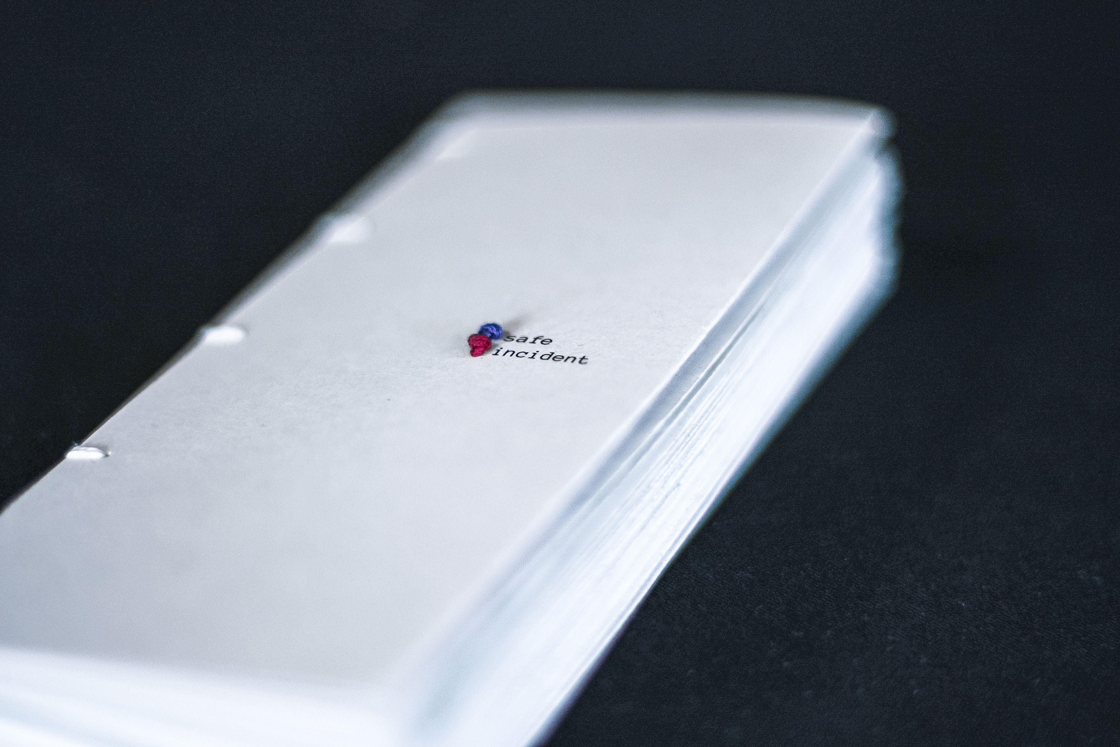 This book explores the relationship between safe spaces and incidents of street harassment using personal experiences. Each point is plotted with an embroidered knot on a map of text between the locations. The knots can be seen through the pages, representing the lasting impact of these experiences. The maps are prefaced by contextual information and followed by a written reflection.